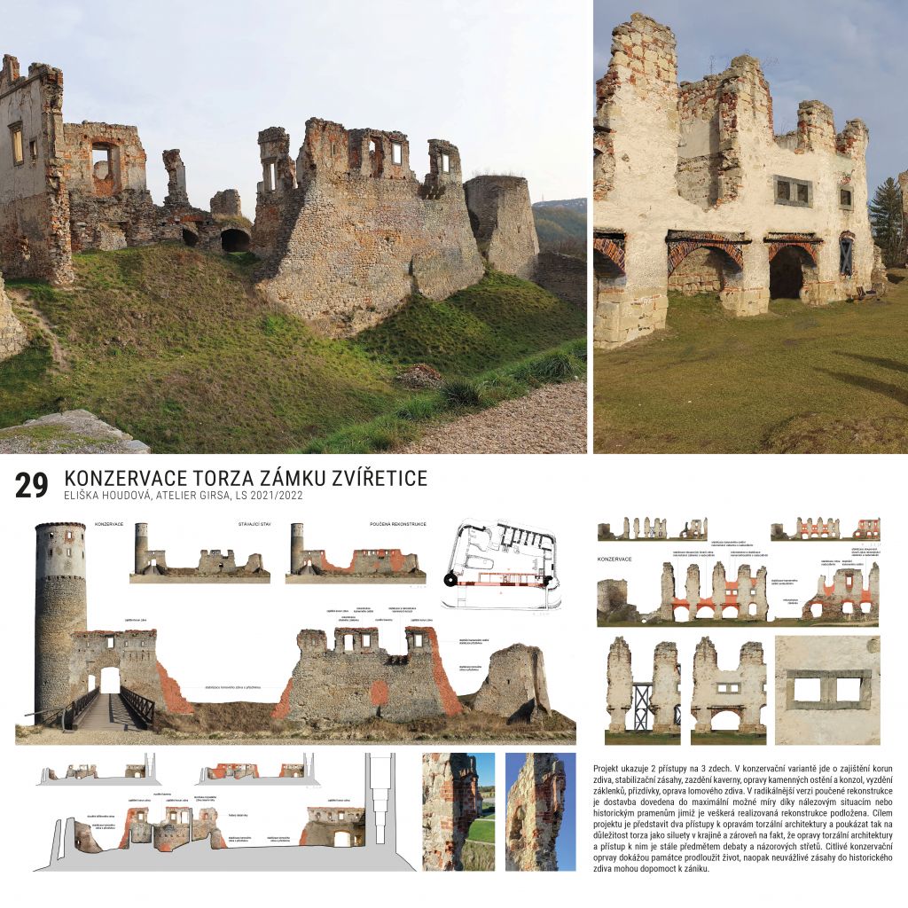 1. cena: Eliška Houdová (č. 29) ateliér prof. Václava Girsy, Konzervace torza zámku Zvířetice