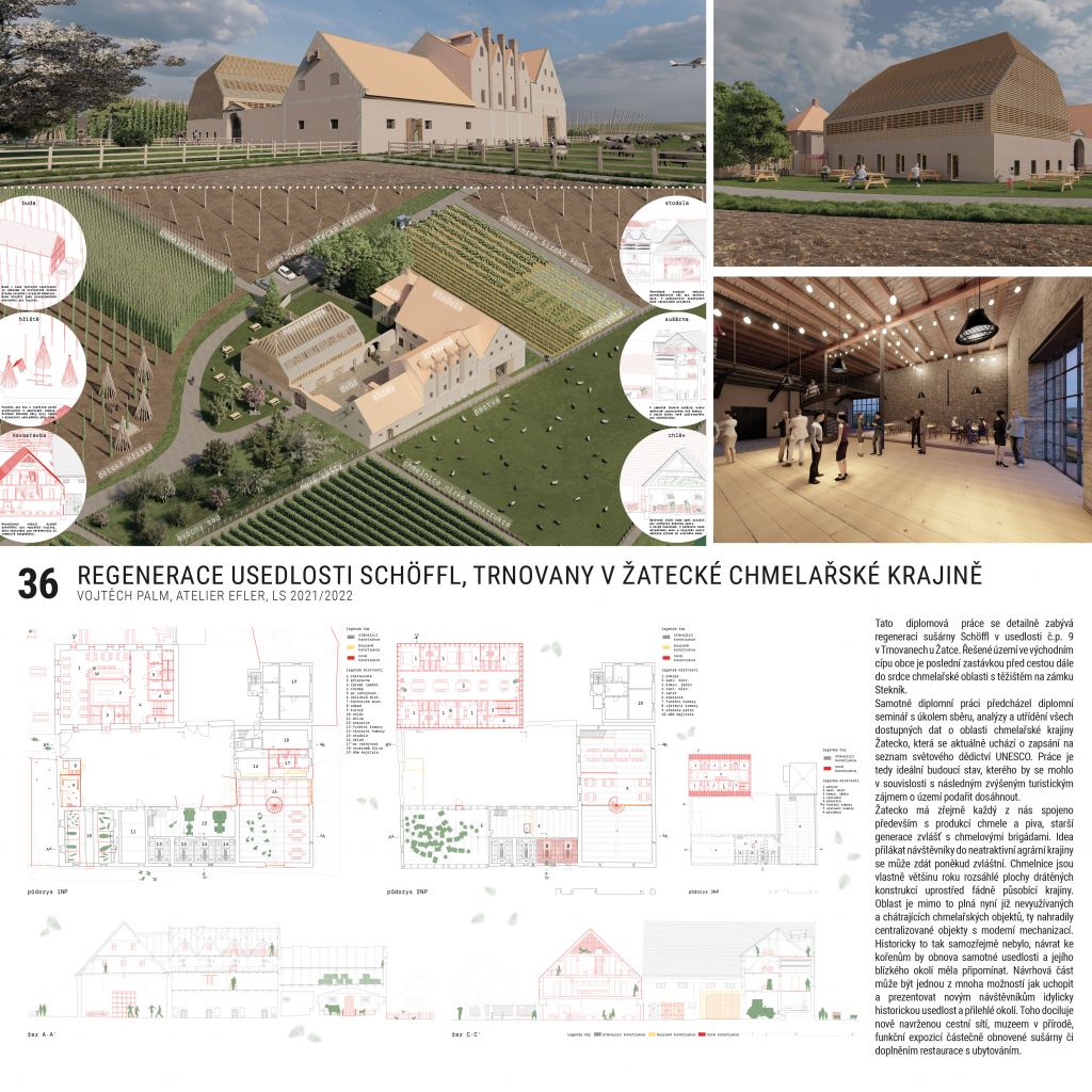 1. cena: Klára Bohuslavová (č. 11) ateliér architekta Tomáše Eflera, Revitalizace žatecké chmelařské krajiny v okolí zámku Stekník