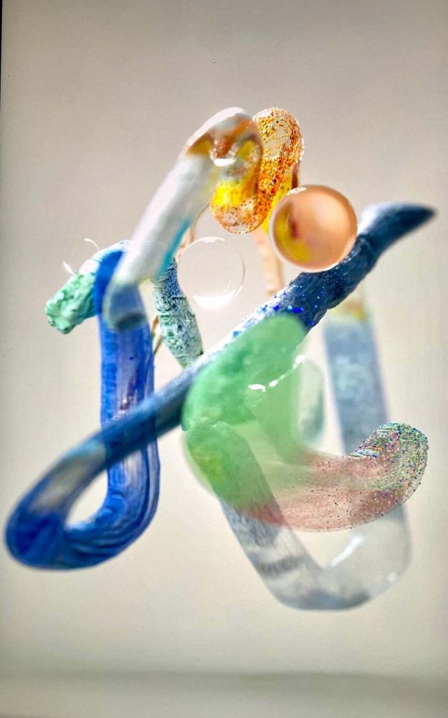 Vstup do světa virtuálních galerií otevřel malbě Lu Jindrák Skřivánkové ještě další možností, jak s digitálním dílem pracovat. První NFT 202204 totiž nezůstalo pouze obrazem v internetovém prostoru, ale dalo základ myšlence vtáhnout dílo zase do skutečného světa, ovšem v nové podobě. Ve 3D. „Vzniknul tak 3D digitální model jednoho daného obrazu. Posunuli jsme s mým mužem obraz do další jiné formy vizuálního pojetí, a to jak v použití materiálů, forem pohybu či použitých partiklů, které nám tento derivát transformují do nového rozměru. Procesem defragmentace díla se dostáváme zpět do reálného světa v podobně hmatatelného prostorového objektu,“ komentuje Lu Jindrák Skřiváková reálnou „sochu“, kterou si mohli hosté prohlédnout právě v budově WPP Campusu v pražských Holešovicích při příležitosti prvního dropu druhého NFT díla 202206. Na vzniku 3D podoby původního abstraktního obrazu se podílela svou technikou zpracování společnost PrusaLab. Umělkyně pak předmět vytištěný na 3D tiskárně kolorovala barvami reálného obrazu.