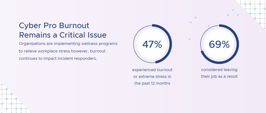 • Vyhoření počítačových expertů zůstává závažným problémem. 47 % respondentů uvedlo, že v posledních 12 měsících zažili vyhoření nebo extrémní stres, což je mírný pokles oproti 51 % v loňském roce. V důsledku toho 69 % respondentů z této skupiny (oproti 65 % v roce 2021) uvažovalo o odchodu ze současného zaměstnání. Zaměstnavatelé se však snaží proti tomu bojovat, přičemž více než dvě třetiny respondentů uvedly, že jejich pracoviště v rámci opatření proti syndromu vyhoření zavedla wellness programy.