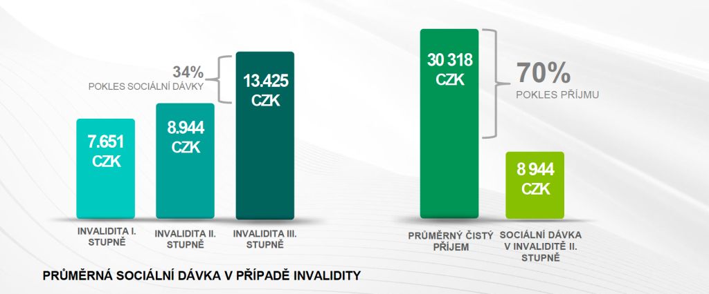 Rozdíl mezi průměrným čistým příjmem, který je nyní 30 318 Kč, a sociální dávkou v invaliditě II. stupně, která je 8 944 Kč, je totiž obrovský.