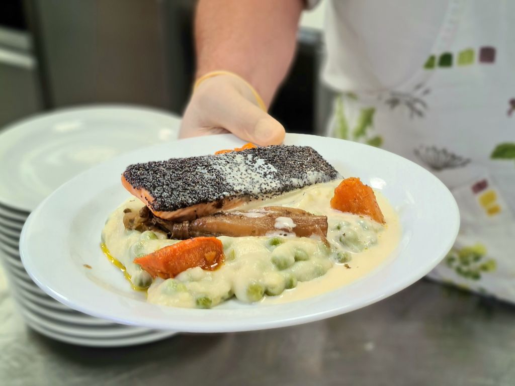 Slanina pro zaměstnance k obědu připravil lososa v makové krustě s bramborovým pyré, nastavovaným hráškem a restovanou čekanku s karotkou. Celý pokrm zastřešil svěží citrónovo-máslovou omáčkou. „Jsem přesvědčen o tom, že i ve firemní kantýně se dá vařit pestře, moderně, chutně a zdravě,“ uvedl Ondřej Slanina. O pitný režim se pak postaral autonomní robot, který zaměstnancům rozvážel vodu a upozorňoval je na důležitost pravidelného příjmu tekutin.