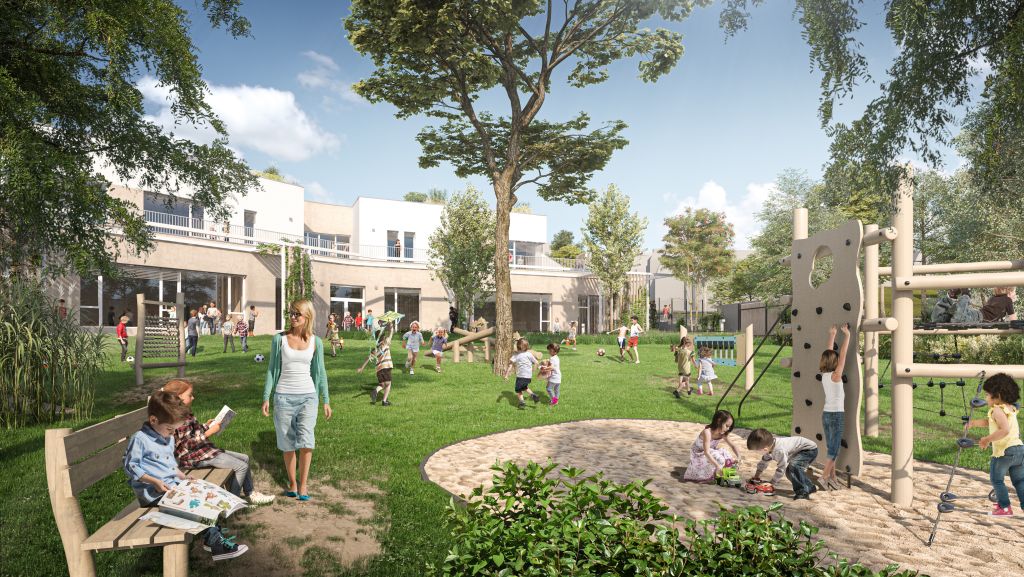 Na pozemku školky se nachází mnoho dřevin, které budou po dendrologickém ošetření zachovány. Projekt tedy pracuje s přírodou, která už na místě je, a pouze do ní vnáší nový moderní prvek, který do stávajícího prostředí hezky zapadne. Z přírodních materiálů bude i několik dětských hřišť a prolézaček. V průběhu studie byl projekt konzultován s odborem školství MČ Prahy 12.