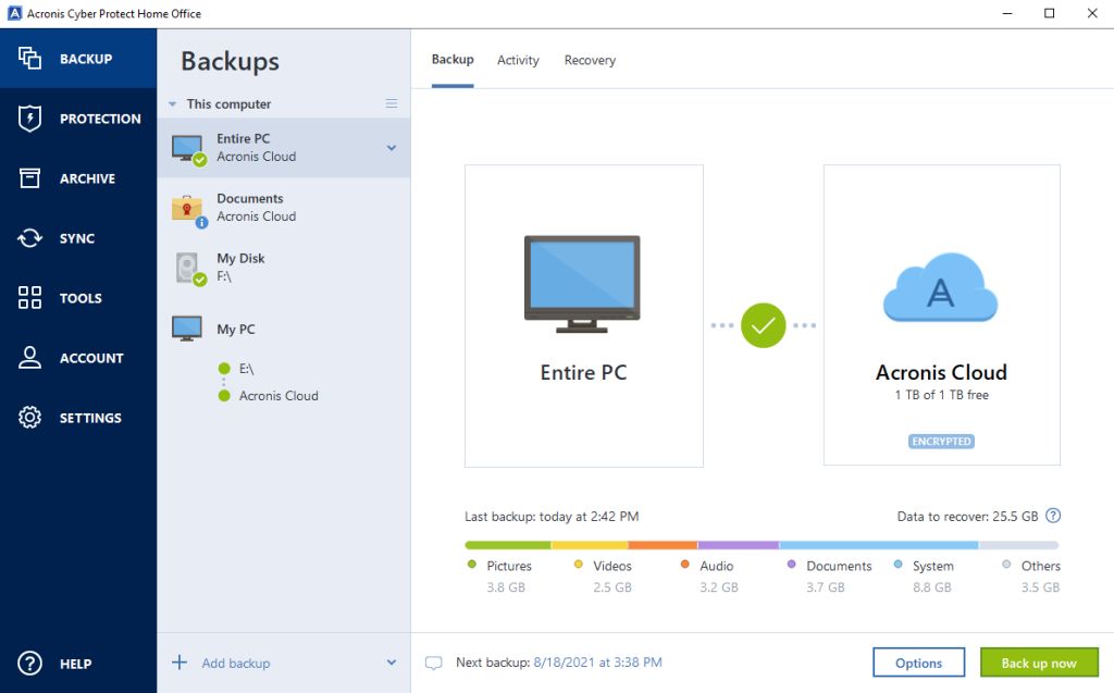 Aktuální verze produktu, který nese nový název Acronis Cyber Protect Home Office od roku 2021, přináší další vylepšení. K nim se řadí především možnost stahování cloudových záloh do lokálního umístění umožňující rychlou obnovu i bez internetového připojení. Dalším je možnost modulární instalace, kdy není třeba instalovat celý program ale pouze vybrané komponenty.