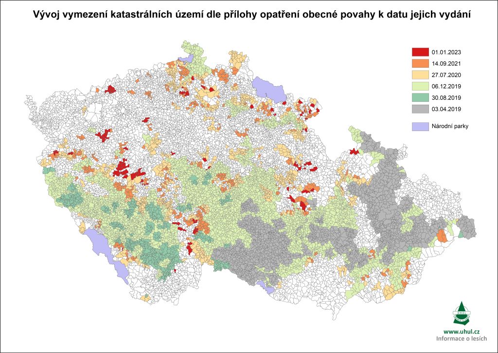 Ministerstvo zemědělství zároveň neprodlužuje možnost odložení těžby kůrovcových souší nebo využívání reprodukčního materiálu lesních dřevin z kterékoli přírodní lesní oblasti a nadmořské výšky (kromě smrku ztepilého) k zalesňování holin po kalamitě. Platnost těchto opatření byla stanovena do 31. prosince 2022 a uplynutím této lhůty zaniká.