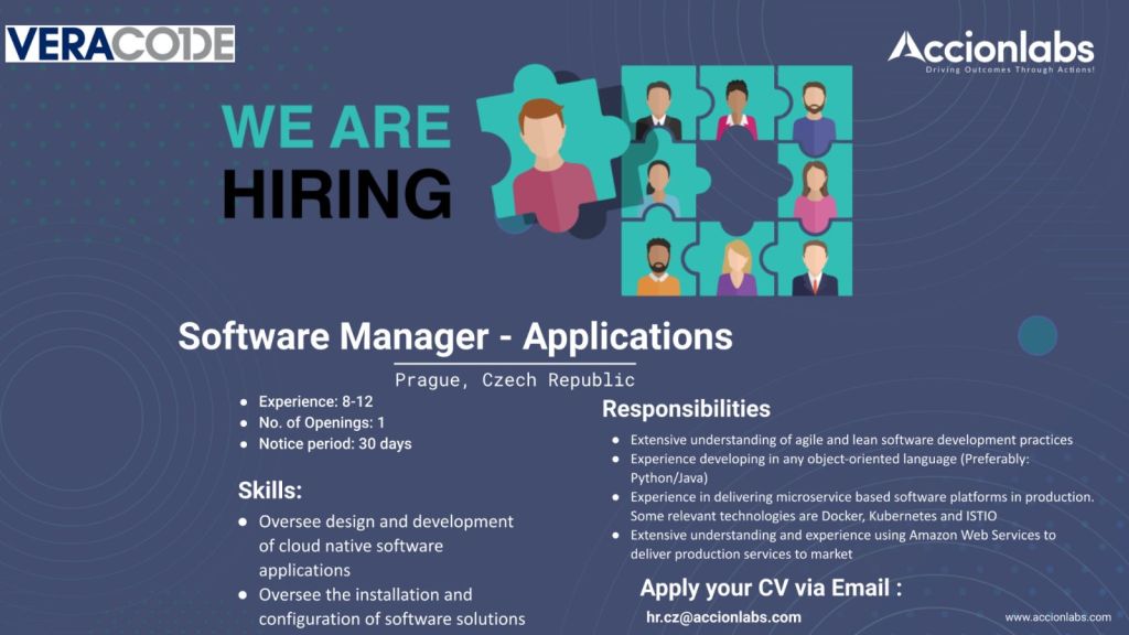 Společnosti Accion Labs, globální poskytovatel komplexních inženýrských služeb a softwarového poradenství a Veracode, přední světový poskytovatel řešení pro testování bezpečnosti aplikací, oznámily partnerství a vybudování nového inženýrského centra Veracode v Evropě. Výsledkem spolupráce bude větší schopnost společnosti Veracode dodávat vysoce kvalitní bezpečnostní řešení nové generace využitím rozšířené globální podpory. To vše díky novému inženýrskému centru v Praze.
