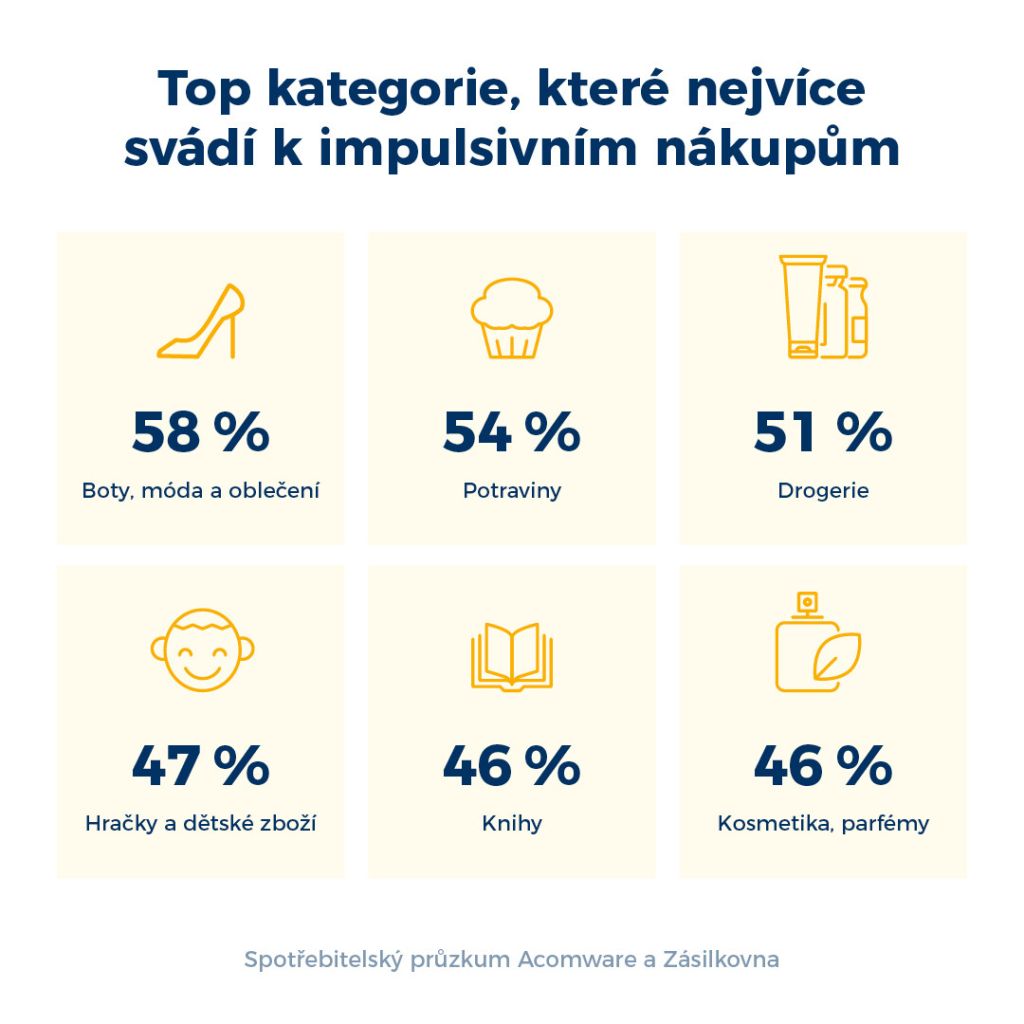 Podle posledního rozsáhlého spotřebitelského průzkumu mezi více než 1 000 respondentů, který pro marketingovou agenturu Acomware a logisticko-technologickou společnost Zásilkovna realizovala společnost Ipsos, impulzivní nákupy na základě „zajímavé velké slevy“ či výprodeje připouští 42 % respondentů.