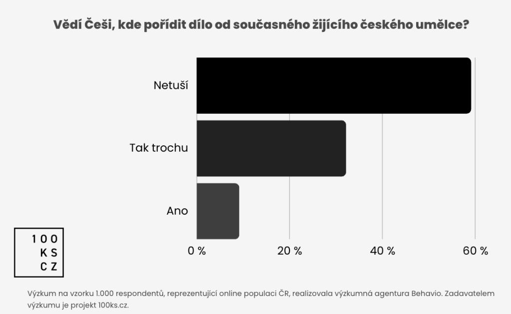 Podle online výzkumu o vztahu Čechů k výtvarnému umění zpracovaného pro projekt 100ks.cz netuší více než polovina Čechů, kde originální dílo od žijícího výtvarného umělce zakoupit. Pouze 14 % pak má s nákupem originálu zkušenosti, dílo nejčastěji pořídili přímo u umělce.