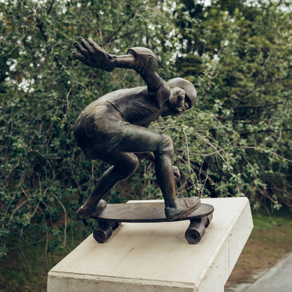 Jedním z hlavních prvků volnočasového areálu je víceúčelová plocha v podobě velkého modrého oválu. A právě jeho budování bylo z celého areálu nejnáročnější. Jednalo se v zásadě o sochařskou práci – okraje a záhyby oválu modelovali a leštili odborníci z Mystic Construction ručně, protože pro jízdu na skateboardu je nezbytné, aby byl povrch dokonale hladký. Vynaložené úsilí ale stálo za to a na oválu se již od půlky srpna prohánějí nadšení skateboardisté, kterým zdařile sekundují koloběžkáři. Do parku se po repasování vrátila také socha skateboardisty, která tam dříve stála, ale byla poničena vandaly.