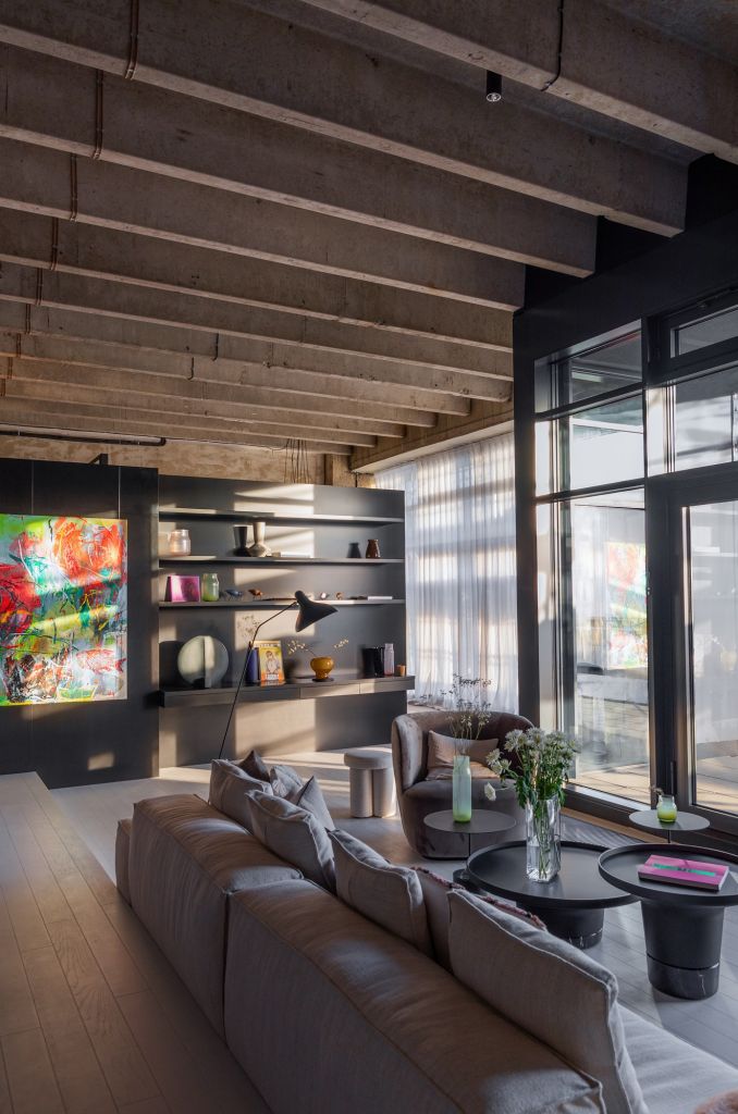 O návrh druhého loftu, v němž je industriální styl využit naplno, se postaralo renomované studio OOOOX Radky a Jakuba Valových. Spolumajitelka Radka Valová popisuje vzorový byt: „Od prvního okamžiku nás nadchla konstrukce objektu – především fakt, že se jedná o skutečnou industriální stavbu. Navíc v PSN byli vstřícní myšlence, že původní konstrukce využijeme v maximální možné míře. V interiéru jsme tak nechali obnažené monolitické konstrukce a dělící příčky jsme opatřili jen hrubou jádrovou omítkou. Rozhodli jsme se jít cestou velmi razantního designu, a proto jsme zvolili černou. Tu jsme doplnili o zlatou, žlutou a oranžovou například v podobě mosazi, která tvoří jemný detail do kontrastu s hrubým betonem. Tento drobný akcent povýší industriál na luxus.“