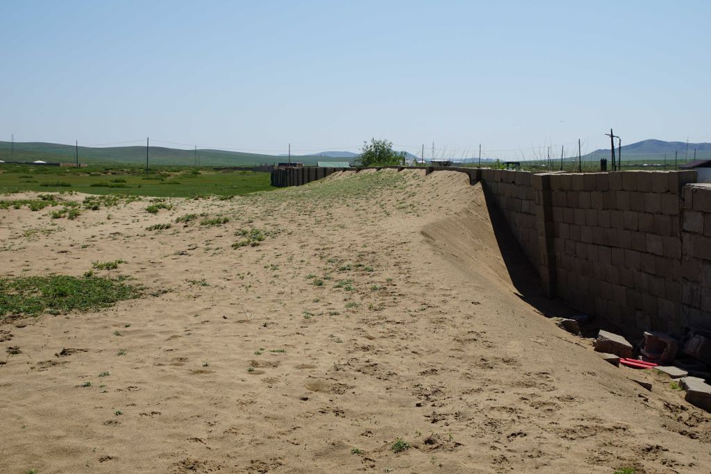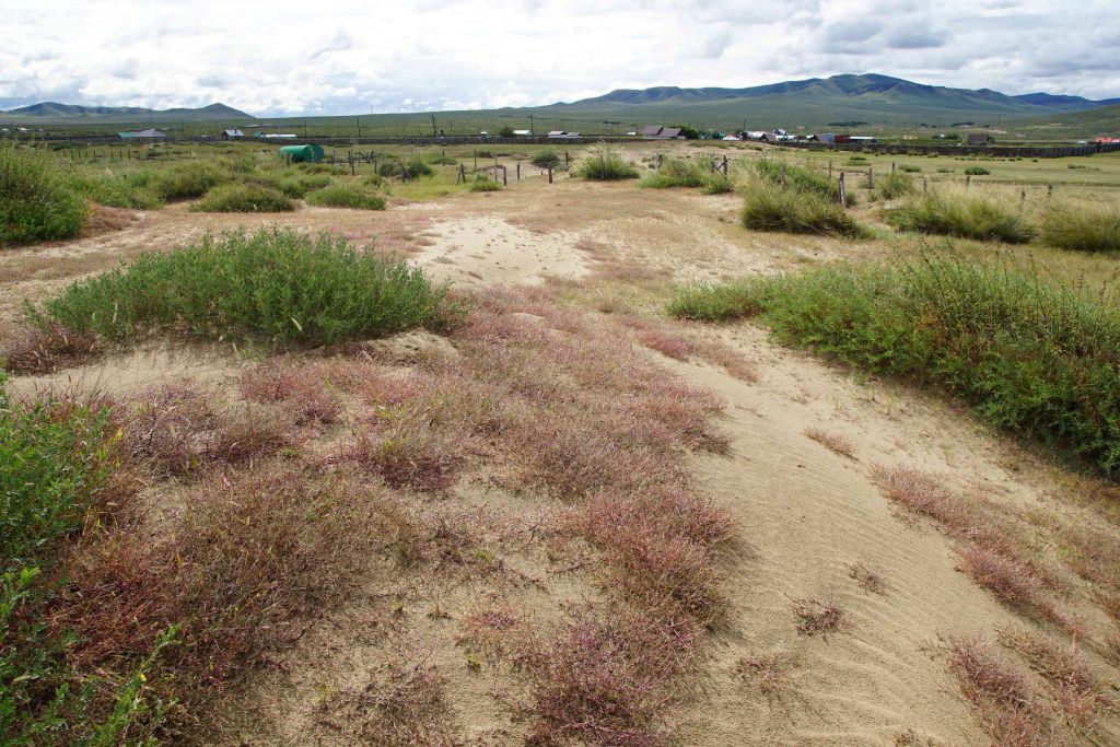 Okolní stepní krajina je silně poznamenána příliš intenzivní pastvou hospodářských zvířat a klimatickou změnou. Z krajiny se i přes blízkost řeky rychle ztrácí voda a zasypává ji písek, který již překonal ochrannou zeď tamní osady. Vědci vybudovali multifukční ukázku ochrany formou větrolamu zahrnující dunu, degradovanou step i říční břeh. Bude moci být realizována i na dalších podobně postižených místech v Mongolsku.