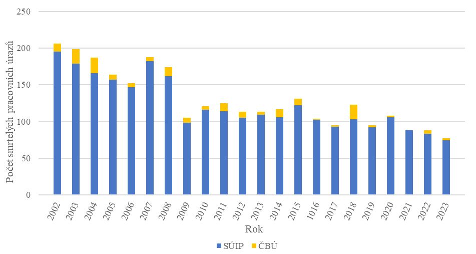 V roce 2023 zaznamenal SÚIP 74 smrtelných pracovních úrazů a ČBÚ 3 smrtelné pracovní úrazy, což znamená výrazný pokles o téměř 13 procent oproti roku předchozímu, kdy došlo k 88 takovým úrazům. Nejvíce smrtelných pracovních úrazů se v roce 2023 stalo na území hlavního města Prahy a krajích Moravskoslezském, Ústeckém a Jihočeském.